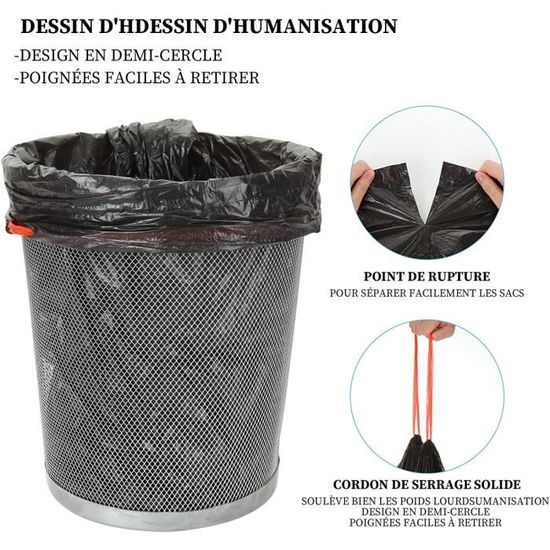 La conception intelligente de ces sacs poubelle facilite leur utilisation quotidienne. Équipés de poignées solides, ils permettent un transport aisé et une manipulation sans effort, que ce soit pour les vider ou les remplacer. De plus, le lien coulissant permet de fermer le sac en toute simplicité, évitant ainsi les déversements et les mauvaises odeurs. Ne vous souciez plus des fuites d’eau grâce à leur épaisseur et leur résistance, qui forment une barrière efficace contre les liquides indésirables.