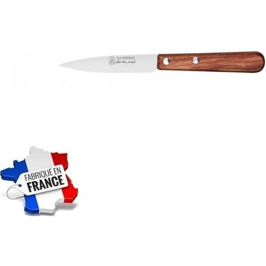 Fabriqués avec soin en France, ces ustensiles de cuisine allient tradition et modernité. Leur manche en bois offre une prise en main confortable et ergonomique, tandis que les deux rivets en aluminium assurent une solidité et une durabilité à toute épreuve. Le bois utilisé pour le manche peut varier, apportant une touche unique à chaque couteau, qu’il s’agisse de palissandre, sapelli ou hêtre.