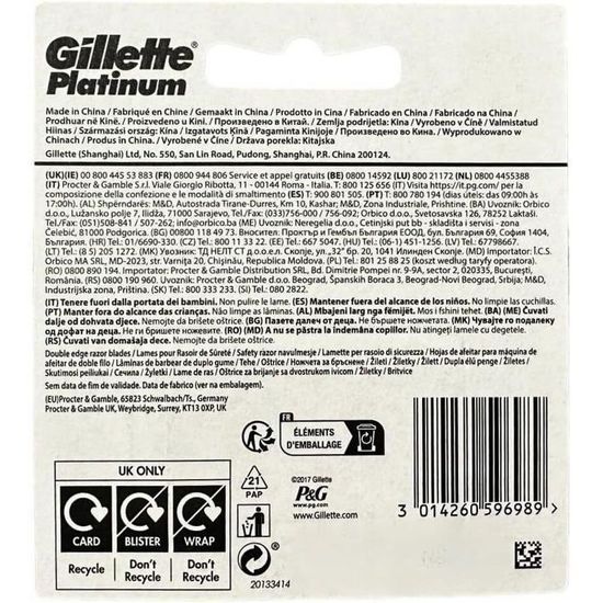 Lot de lames de Rasoir Gillette Platinum sureté Premium 25pcs