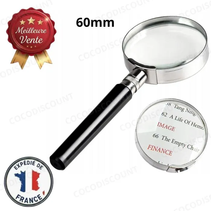 Découvrez la Loupe CLASSIC 60 mm, l’outil indispensable pour observer tous les détails avec précision. Grâce à son grossissement 3x et son diamètre de lentille de 60 mm, elle permet d’examiner facilement bijoux, timbres, pièces de monnaie, documents, composants électroniques ou tout objet nécessitant une inspection minutieuse. Sa lentille en verre de haute qualité offre une image nette, lumineuse et fidèle, idéale pour un usage professionnel ou domestique.