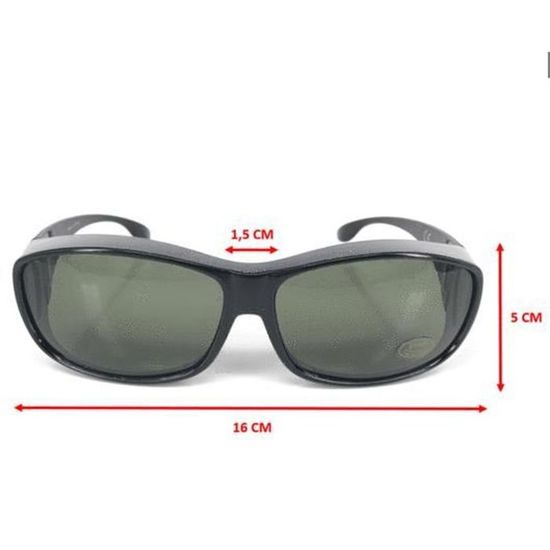 Ne dépensez plus une fortune pour des lunettes de soleil adaptées à votre vue ! Nos surlunettes sont spécialement conçues pour s’adapter à vos lunettes de vue. Avec un cadre parfaitement adapté aux montures mesurant moins de 39x145mm, vous pourrez facilement les porter par-dessus vos lunettes actuelles. Assurez-vous simplement de vérifier la taille de vos lunettes avant de passer commande, et réalisez ainsi de réelles économies !