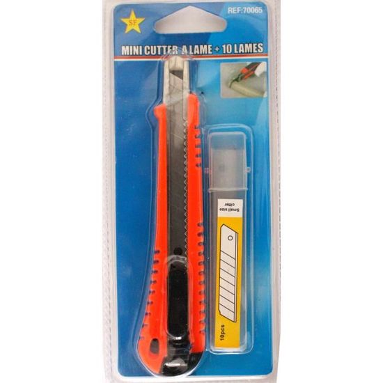 Mini cutter à lame + 10 lames 13 x 3 cm couleur