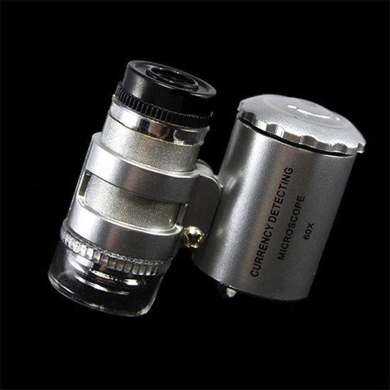 Mini Microscope 60X LESHP – Loupe portable avec lumière LED et UV pour bijoux et timbres