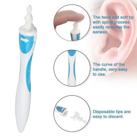 - Utilisation Intuitive : Il vous suffit de tourner la poignée pour activer le nettoyage. La pointe flexible avec des rainures en spirale collecte le cérumen en douceur, sans endommager le conduit auditif.