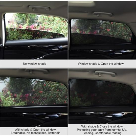 - Taille : État naturel de 62x58cm (24,4″ x 22,8″ x 0,2″), extensible pour s’adapter à la plupart des fenêtres latérales de voiture.