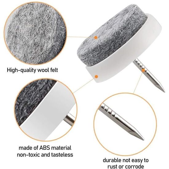 Fabriqués à partir de feutre doux de haute qualité, de plastique ABS durable et de métal robuste, ces patins sont non seulement antidérapants, mais également résistants à l’usure. Ils garantissent une adhérence parfaite sur diverses surfaces, que ce soit du parquet, du carrelage ou du linoléum, tout en évitant les glissements et les accidents.