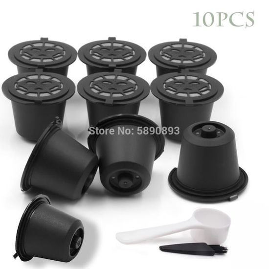 Petit déjeuner – Café : 10 pièces réutilisables Nespresso café Capsules tasse avec cuillère brosse noir