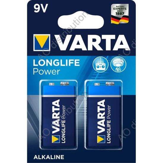 Pack de 2 Piles Alcalines 9V Varta Longlife Power – Performantes et Durables