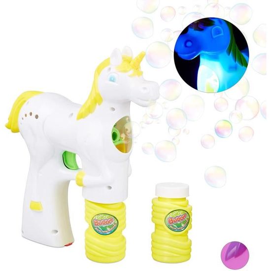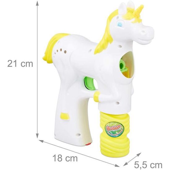 Pistolet à bulles Licorne pour enfant avec lumière LED et savon – Set de 2, blanc 247