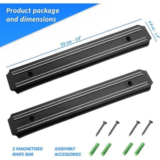 Découvrez une nouvelle façon d’organiser votre cuisine avec notre porte couteaux aimanté. Cet ensemble de porte-couteaux, comprenant 2 pièces, offre une double capacité de stockage, parfaitement adaptée à toute collection de couteaux et d’ustensiles. La barre magnétique, soigneusement sélectionnée, garantit une force magnétique ultra forte, uniformément répartie à travers tout le porte-couteau, conçu pour conserver sa puissance au fil du temps.