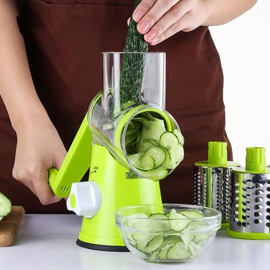 - Trois lames polyvalentes : Chaque lame est conçue pour un usage spécifique – râpe fine, râpe épaisse et trancheuse, vous offrant une flexibilité optimale pour toutes vos recettes.