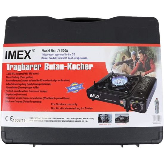 Réchaud à gaz portable I-MEX – 2,2 kW – 39 x 13 x 32 cm – Avec mallette de transport