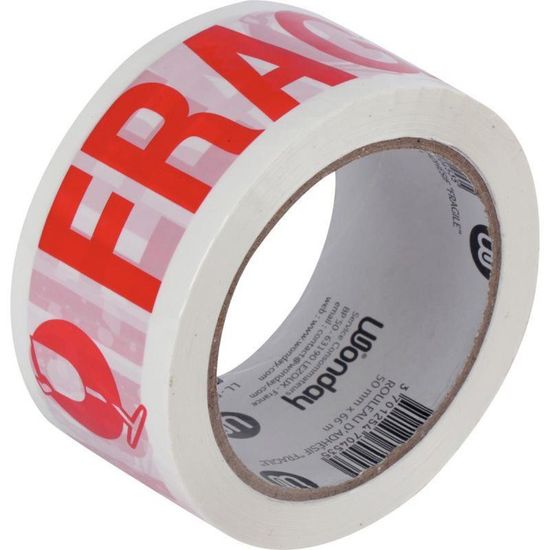 Découvrez notre lot de 6 rouleaux adhésifs de haute qualité, spécialement conçus pour garantir la sécurité de vos colis durant le transport. Chaque rouleau mesure 50 mm de large et 66 mètres de long, offrant ainsi une excellente longueur pour répondre à tous vos besoins d’emballage. Imprimés avec le message ‘FRAGILE’ en rouge sur fond blanc, ces rouleaux permettent d’attirer rapidement l’attention sur le contenu délicat de vos paquets.