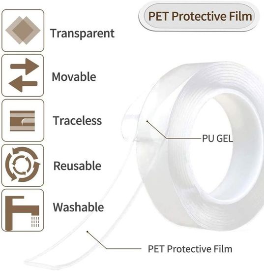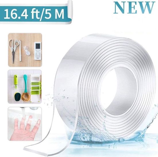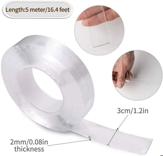 Ruban adhésif – QIEDOVIEY – Double face nano 5M – Transparent – Amovible – Réutilisable