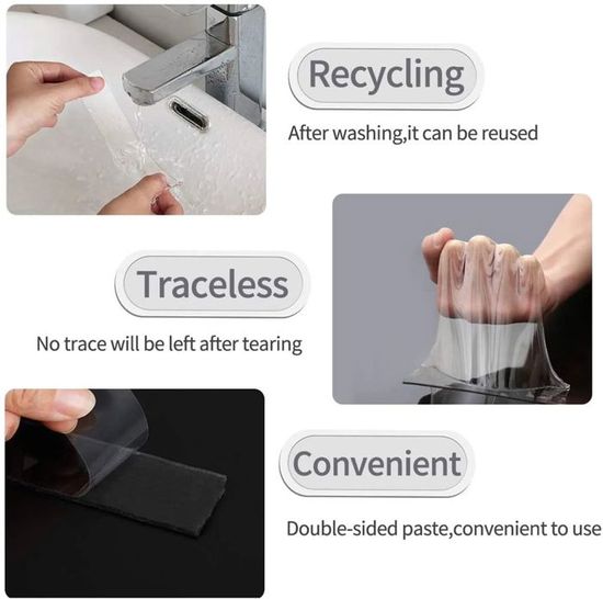 Découvrez le ruban adhésif double face nano de 5 mètres, un allié indispensable pour toutes vos tâches. Ce ruban est non seulement transparent, mais également amovible et réutilisable, ce qui le rend parfait pour des applications temporaires sans laisser de résidus.
