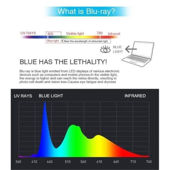Surlunettes anti lumière bleue pour écrans ordinateur, smartphone, tablette ou TV