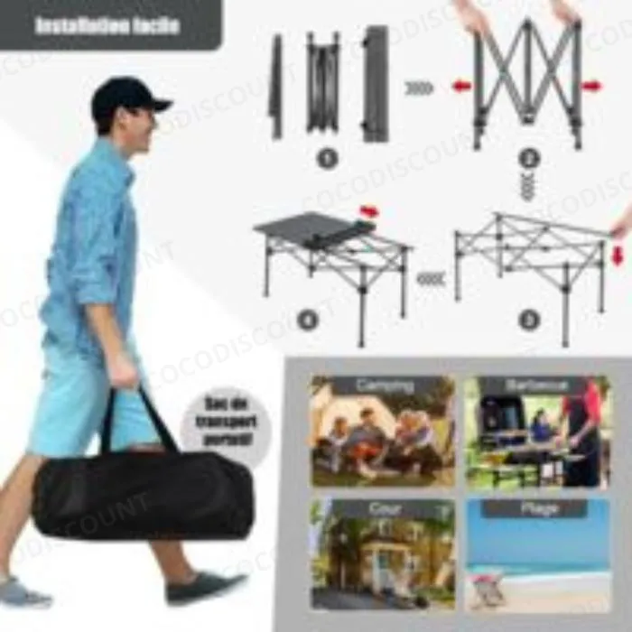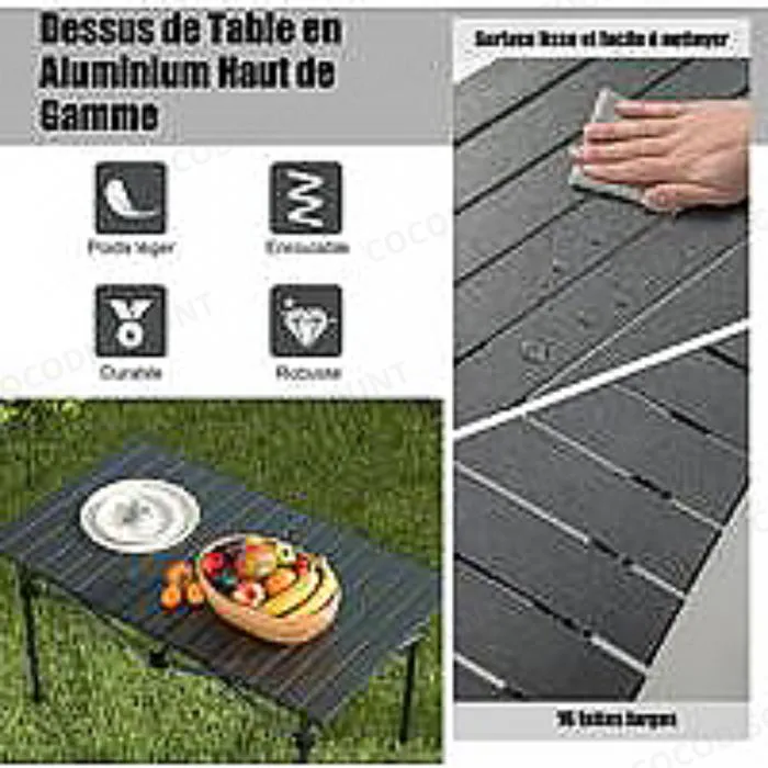 Son design pliable et compact permet un rangement et un transport faciles, grâce au sac de transport inclus, parfait pour les voyages, les sorties improvisées ou les espaces réduits. Facile à déployer, la table se verrouille rapidement et ne nécessite aucun outil, offrant une solution pratique pour des repas immédiats et sécurisés.