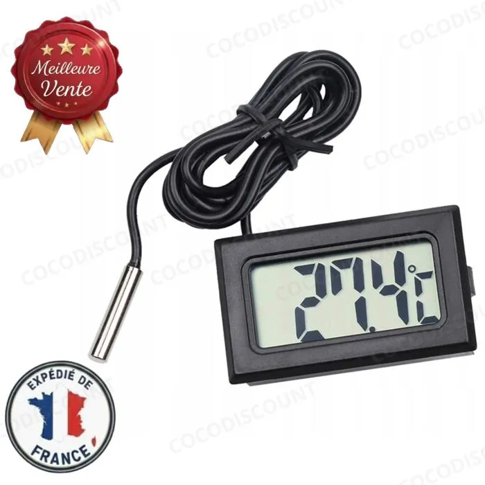 Surveillez facilement la température avec ce thermomètre électronique LCD avec sonde, un appareil précis et pratique conçu pour de nombreuses applications domestiques et professionnelles. Grâce à sa plage de mesure étendue de -50 °C à 110 °C, il est idéal pour contrôler la température dans un aquarium, un réfrigérateur, un congélateur, une serre, un terrarium, un four ou même en extérieur. Sa précision de ±1 °C garantit des relevés fiables pour une surveillance optimale.