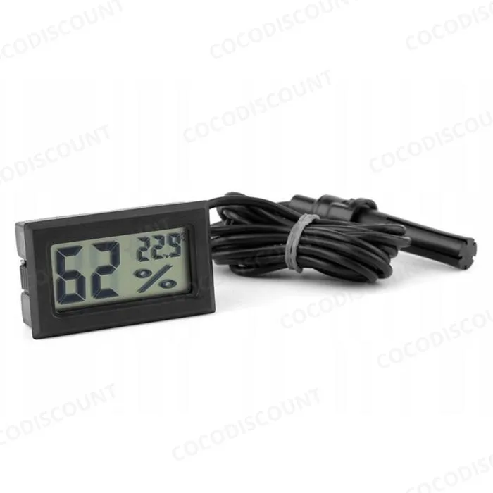 Surveillez facilement les conditions climatiques de vos espaces grâce à ce thermomètre électronique LCD avec sonde, conçu pour mesurer avec précision la température et l’humidité ambiante. Polyvalent et fiable, cet appareil est idéal pour de nombreuses applications : aquarium, serre, terrarium, réfrigérateur, congélateur, cave, voiture ou pièce de la maison. Il permet de contrôler efficacement votre environnement afin de préserver vos plantes, animaux ou produits sensibles.